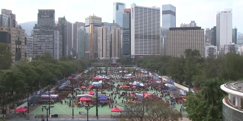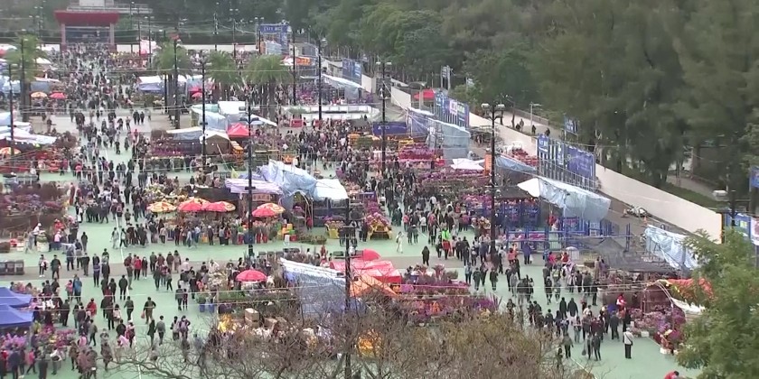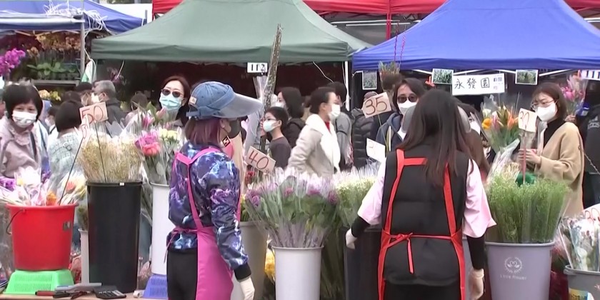Flower markets like the one in Victoria Park were closed during the COVID-19 pandemic. Recorded announcements over loudspeakers are played to remind people not to eat or drink while at the flower market, a precaution against spreading COVID-19.