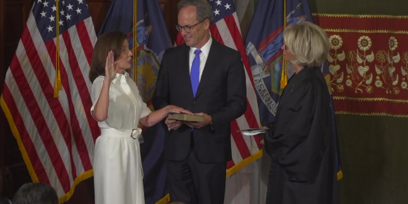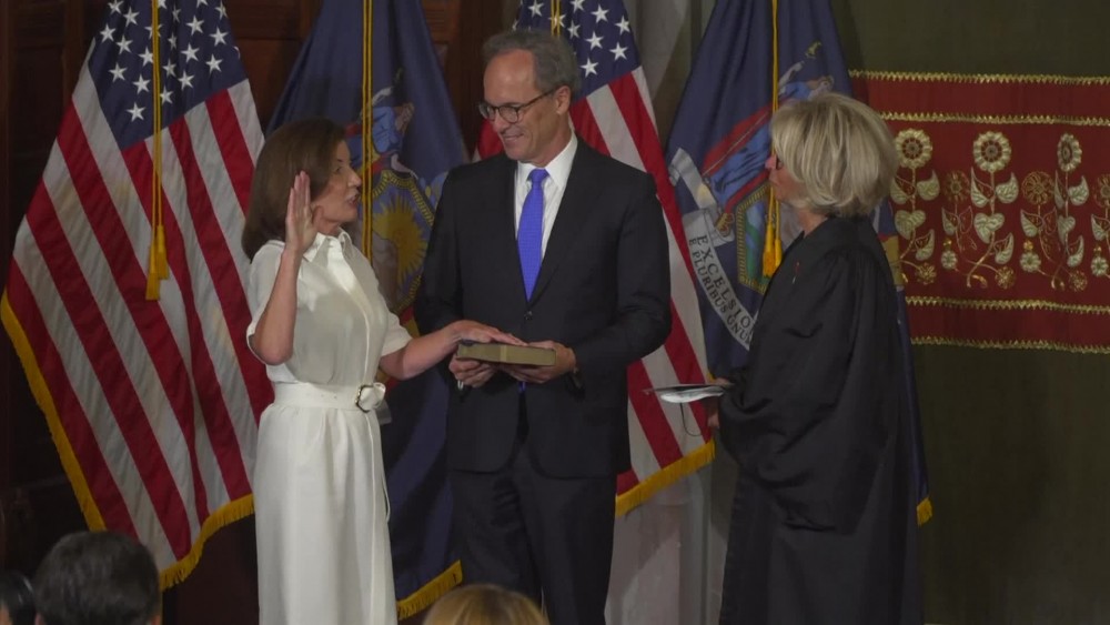 Hochul was formally sworn in as governor just after midnight. A ceremonial swearing-in was repeated before the media on Tuesday morning, in which Hochul took the oath of office.