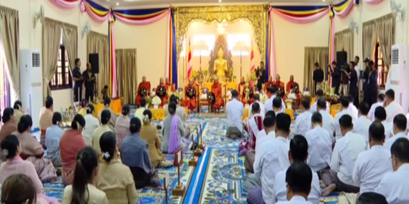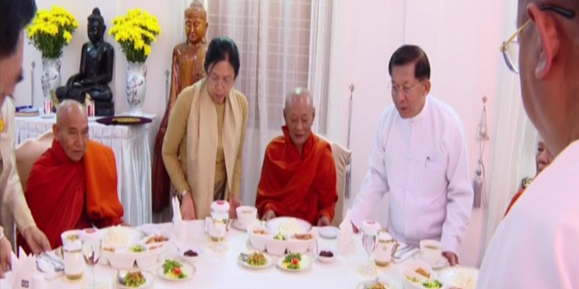 Also present at the ceremonies were the Chairman of State Administration Council Prime Minister Senior General Min Aung Hlaing, wife Daw Kyu Kyu Hla, Council joint-secretary Lt. Gen. Ye Win Oo and wife, council members and wives, Union level officials, union ministers and wives, Nay Pyi Taw Council Chairman and wife, senior military officers from the office of commander in chief and wives, Commander of Nay Pyi Taw Command, invited guests, members of Wut Associations and local residents. First, the congregation led by the SAC Chairman and wife observed nine precepts administered by the Pali Sayadawgyi and the lay persons offered Paritta flowers, water, thread, sand to the members of Sangha and took the Paritta Sutta recited by the members of Sangha.