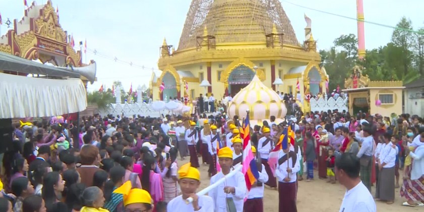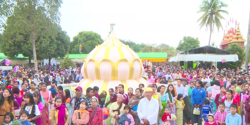 The Kachin State Chief Minister U Khet Htein Nan attended the ceremony of hoisting golden umbrella atop the Zina Man Aung Ahlotaw Pyae pagoda elected in the compound of DhammaRamThi monastery, Shwe Sett Ward in Myitkyina Township of Kachin State in the morning on 4th April.