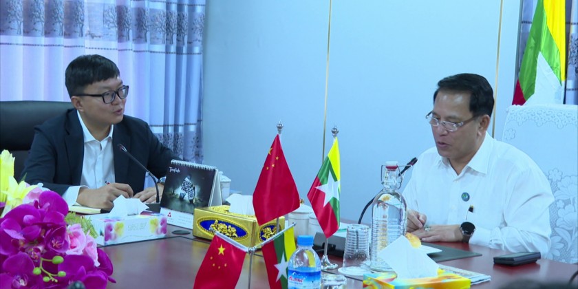 Union Minister for Information U Maung Maung Ohn received a delegation led by Editor-in-Chief of Yunnan International Cooperation Center (YICC) for South and Southeast Asia Mr. Zhang Ruogu of Yunnan Province, People’s Republic of China at the Myanma Radio and Television on Pyay Road in Yangon on Monday morning. At the meeting, they discussed holding China-Myanmar Twin City Media Forum 2023.