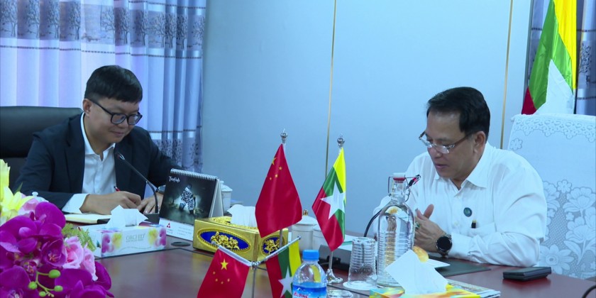 Union Minister for Information U Maung Maung Ohn received a delegation led by Editor-in-Chief of Yunnan International Cooperation Center (YICC) for South and Southeast Asia Mr. Zhang Ruogu of Yunnan Province, People’s Republic of China at the Myanma Radio and Television on Pyay Road in Yangon on Monday morning to discuss holding China-Myanmar Twin City Media Forum 2023.
