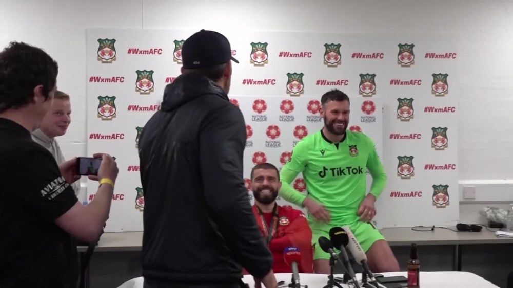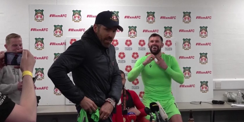 Wrexham co-owner Ryan Reynolds interrupted goalkeeper Ben Foster's press conference to demand his shirt after the Welsh side secured promotion to the fourth tier of the English game.