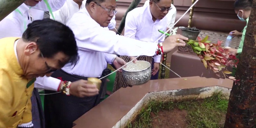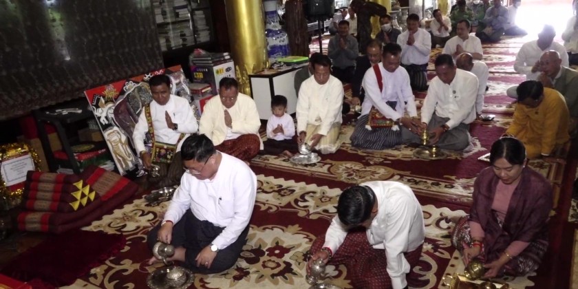 The Shan State Chief Minister Dr. Kyaw Tun accompanied by the deputy minister for cooperative and rural development, deputy commander of Triangle command, state ministers and officials paid homage to the historic That Luang Pagoda in Mong Yawng Township on 21 August, offered flowers, water, candle light to the pagoda, presented cash donation to members of pagoda board of trustee, signed on the guest book, paid obeisance to the presiding Sayadaw and offered the offertories.