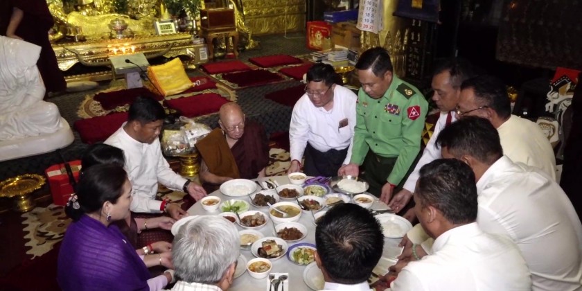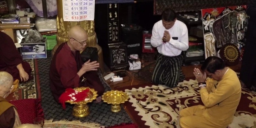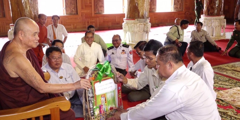 Next, the chief minister and party also paid homage to the presiding Sayadaw of Ho Khon monastery and offered the offertories.