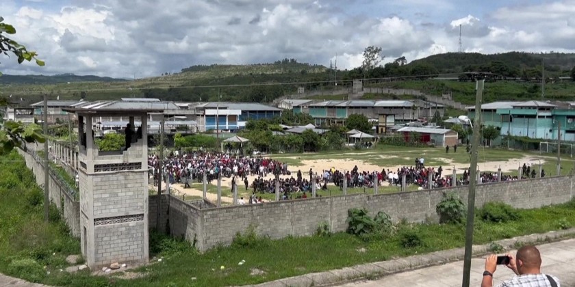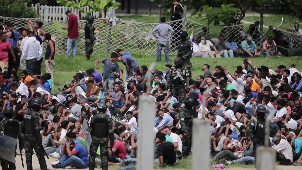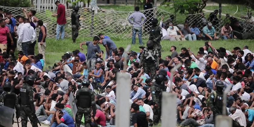 Honduran military police guard inmates in men and women prison units in Tamara, after the government announced that the military police would take control of Honduras' 21 prisons for a year starting July 1, in addition to training 2,000 new prison guards. The decision followed clashes between rival gangs in a prison near the capital Tegucigalpa that left at least 46 women dead.