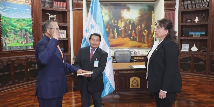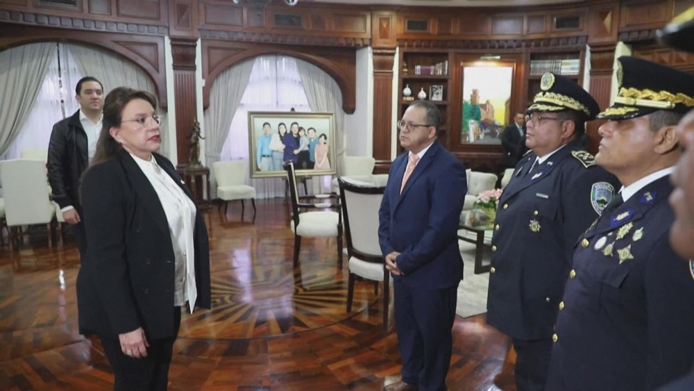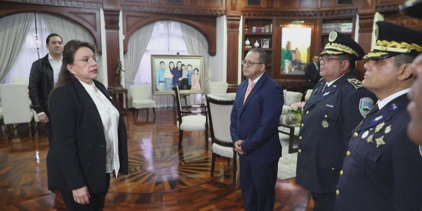 Honduras President Xiamara Castro swears in Gustavo Sanchez as the new Minister of Security and Juan Manuel Aguilar as Director of Police, one day after a vicious battle with guns and fire left at least 46 women dead in a women's jail in Honduras, a country with a particularly high rate of prison violence and more than 1,000 inmate deaths in 20 years.