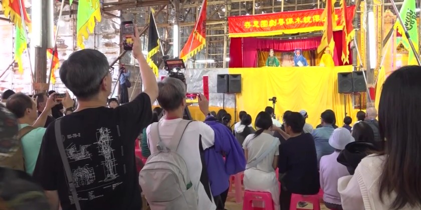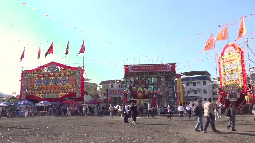 The structure, using around 30,000 bamboo poles, is more than 30 meters high and covers an area of about 3,900 square meters. Construction took two months. Decorated with colorful ornaments, the altar features traditional puppet plays, operas and other performances to be held on a special stage.