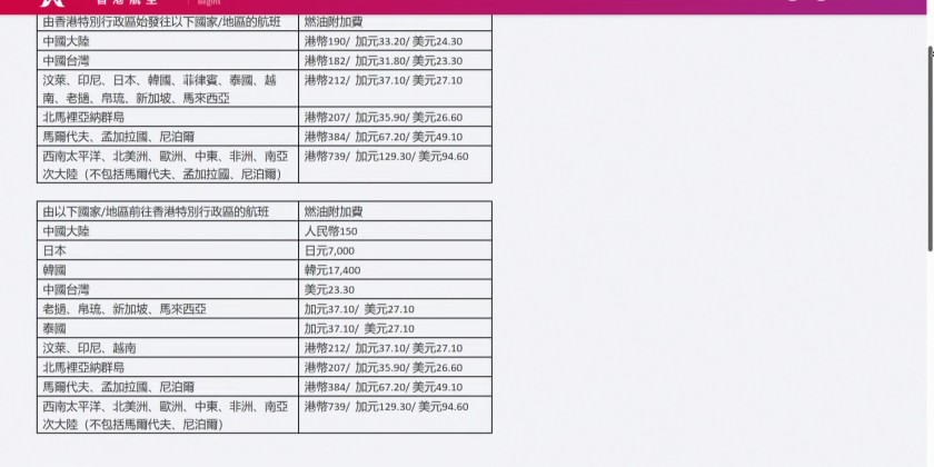 For long-haul flights to the Middle East, Europe, and Africa, the fuel surcharge will increase approximately 25%, meaning passengers will pay an extra HK$300 round trip. For short-haul flights to Japan, South Korea, and Thailand, the fuel surcharge will increase of 30%.