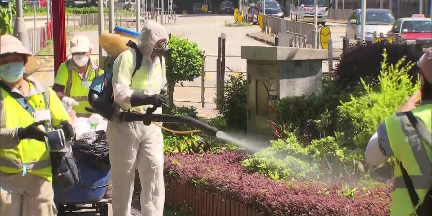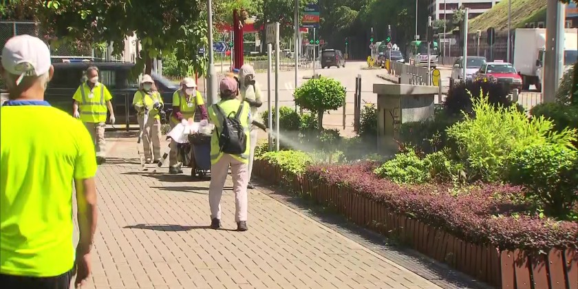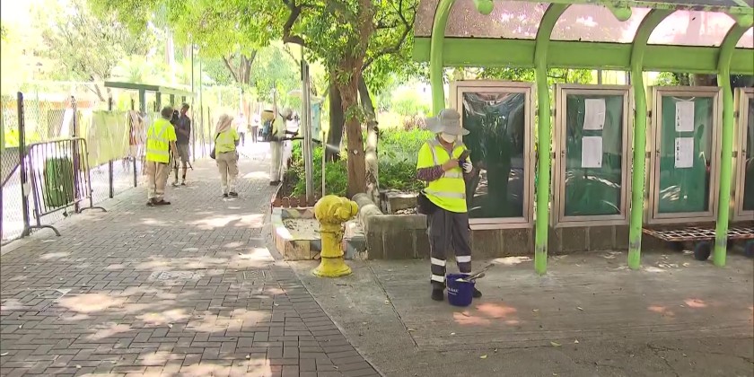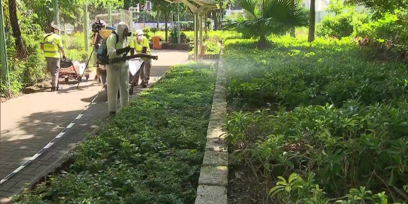 Workers conducted mosquito control operations on a section of Boundary Street outside Fa Hui Park where it reached the yellow level, indicating widespread of mosquitos of the Adedes albopictus type. In many districts, the department is continuing to collaborate with governments departments and stakeholders to strengthen patrols, particularly at construction sites and locations with higher mosquito risk.