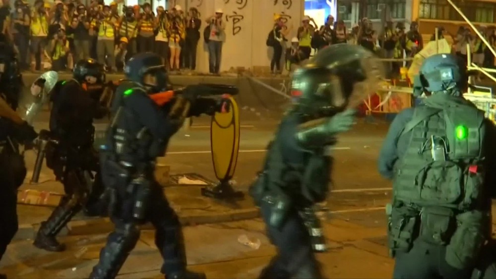 Hong Kong police on Sunday used rubber bullets and tear gas canisters to disperse hundreds of protesters from Hong Kong's Sheung Wan district. Protests over the past two months spearheaded by anti-government activists against a proposed bill that would allow people to be extradited from the city to stand trial in courts in mainland China have grown increasingly violent.