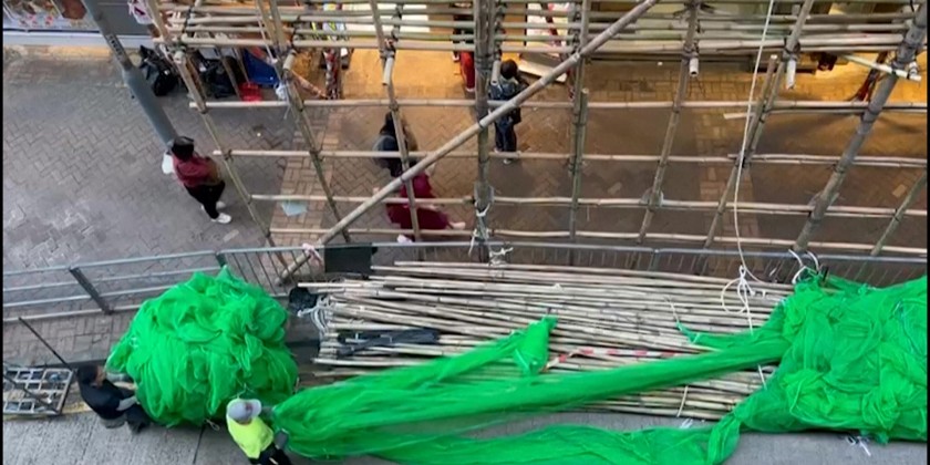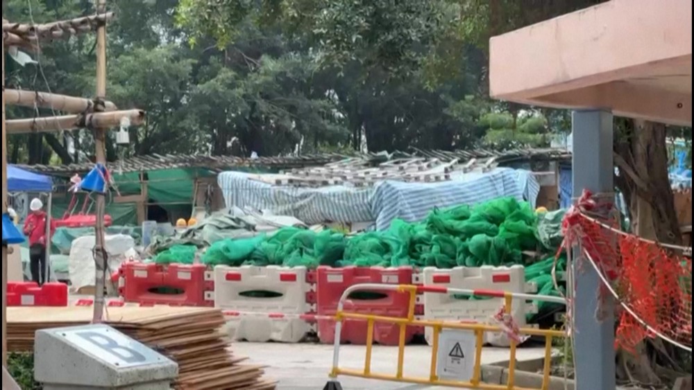 Workers took off protective nets from the scaffolding of buildings in Hong Kong after the government ordered their removal by Saturday. The blaze that devastated Wang Fuk Court, which killed at least 159 people and displaced thousands more, was partly blamed on protective netting installed as part of estate-wide renovations that failed to meet standards for fire resistance.