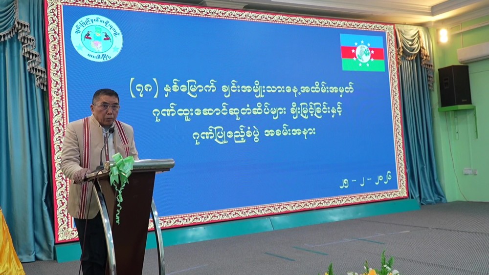 First, the Chief Minister delivered an address, stating that this ceremony was being held because the Chin State Government wished to honour all those who had successfully organized the 78th Chin National Day celebrations. He expressed special gratitude and recognition to all individuals who had worked to successfully conduct the 78th Chin National Day festivities despite numerous challenges and difficulties.