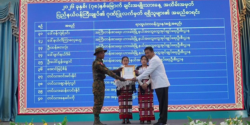 Following this, an award presentation ceremony was held for winners of competitions held in commemoration of the 78th Chin National Day. The Chief Minister and responsible officials presented prizes to students who had won in essay writing, poetry, painting, and cartoon competitions at the higher education level, high school level, middle school level, and primary school level, as well as to winners of sports competitions, it’s reported.