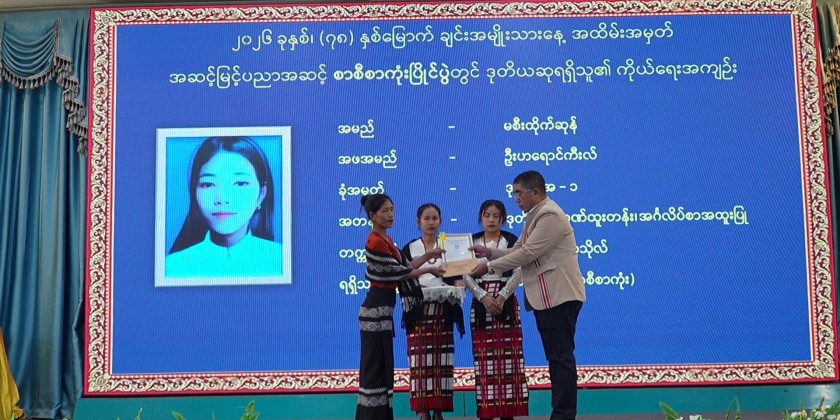 The ceremony was attended by Chin State Chief Minister Dr. Wong Hsun Htan and his wife, the Chief Justice of the State High Court, State ministers, the State Advocate-General, the Secretary of the State Government and their spouses, state-level departmental officials, and award-winning students.