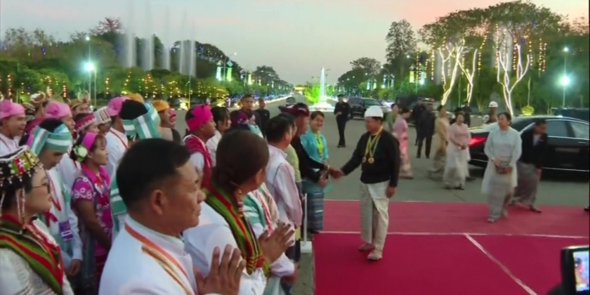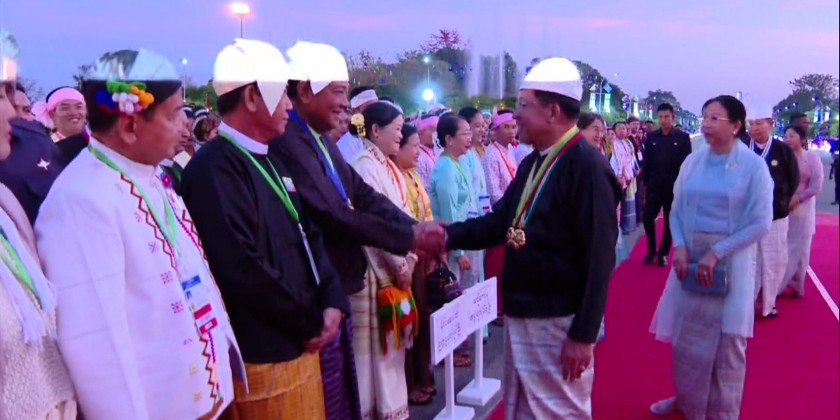 On his arrival, the Acting President and wife cordially greeted the ethnic cultural troupes from regions and states, representatives from political parties, leaders of NCA-signatory EAOs, MSME entrepreuers and invited guests. The Acting President and wife, together with the attendees, observed the fireworks display commemorating the 79th Union Day.