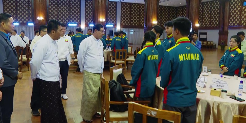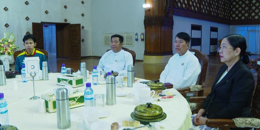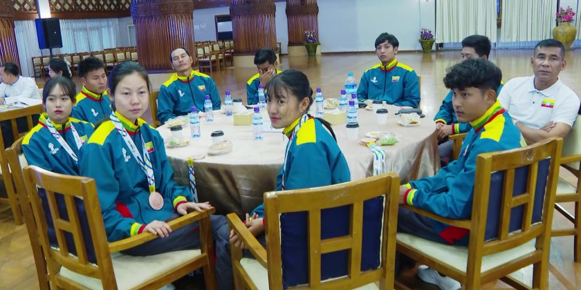Afterwards, on behalf of the athletes, Chinlone gold medalist Ma Khine Thazin Phyo expressed words of gratitude. Then, the Yangon Region Chief Minister U Soe Thein and officials cordially greeted those in attendance.