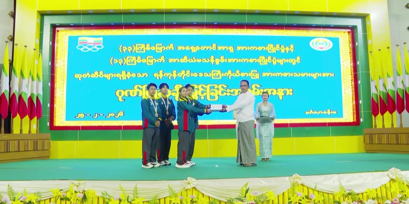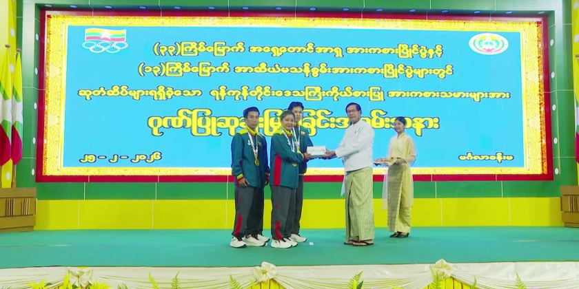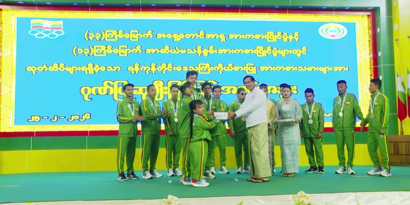 The ceremony was attended by Yangon Region Chief Minister U Soe Thein, Yangon Region High Court Chief Justice Daw Sandar Thwe, Region ministers, departmental officials, coaches, athletes, invited guests, and responsible officials. First, a video clip honoring the Yangon Region representative athletes who won medals at the 33rd Southeast Asian Games and the 13th ASEAN Para Games was screened.
