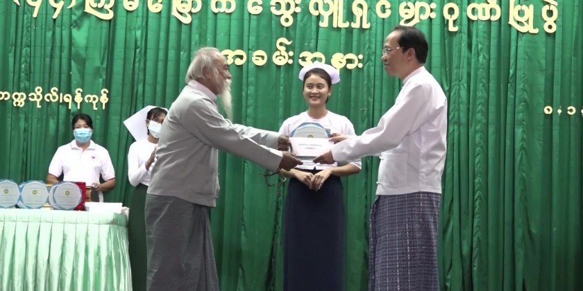 The 44th honoring ceremony for Blood Donors and the honoring ceremony for the blood donors who were awarded the Social Outstanding Medal (First Grade) by the State Administration Council was held at the University of Nursing (Yangon) in the afternoon on 8th January with the attendance of Union Minister for Health Dr. Thet Khaing Win, Yangon Region Chief Minister U Soe Thein, region ministers and senior officials, well wishers and blood donors.