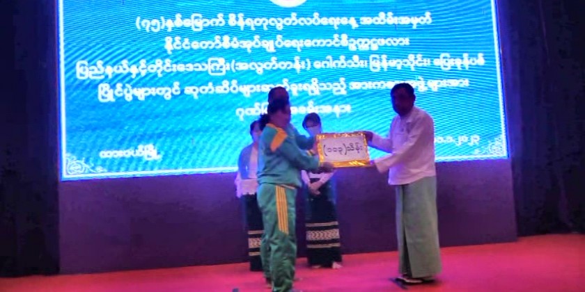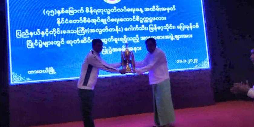 Next, the responsible officials presented trophy secured by the golf team to the chief ministers and the region government presented one million Kyats of cash of honor to the golf team and 200,000 Kyats to the third winner, 0.7 million kyats for the team of traditional martial art of Thaing and 10.3 million Kyats to the prize winning teams of track and field.