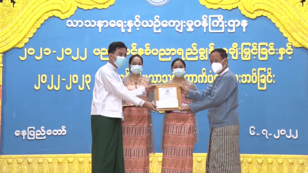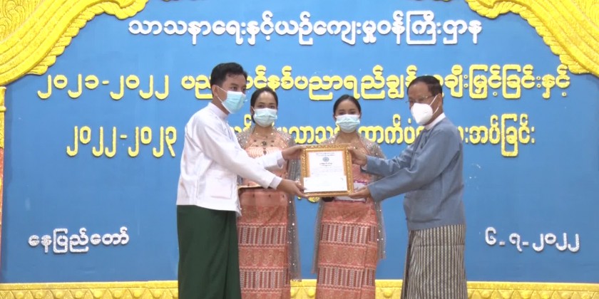 The deputy minister U Aye Tun awarded the certificate of honor and cash of honor to 9 students who passed the exam with two distinctions and deputy minister Dr. Moe Zaw Tun to 8 students with one distinction. Next, the permanent secretary and director generals gave the certificate of honor and cash of honor to the students including those who passed the exam with one distinction and those who passed ordinarily and the officials concerned accepted them.