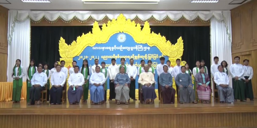 Then, Maung Thant Zaw who passed the exam with four distinctions extended words of thanks on behalf of the students and the union minister, deputy ministers, permanent secretary, director generals, rectors and students posed for the documentary group photo.