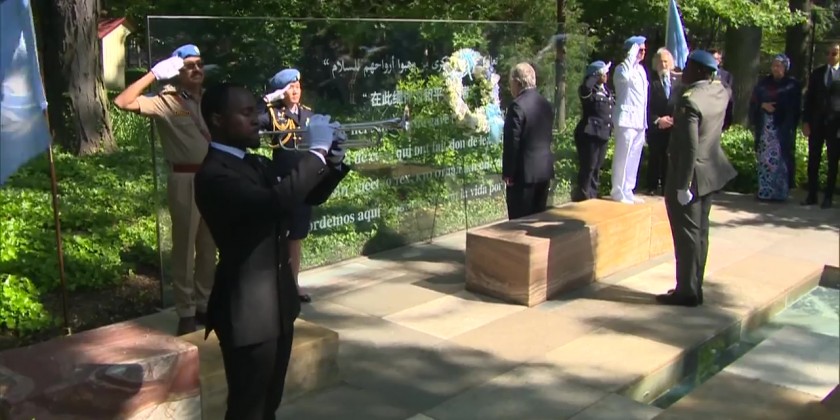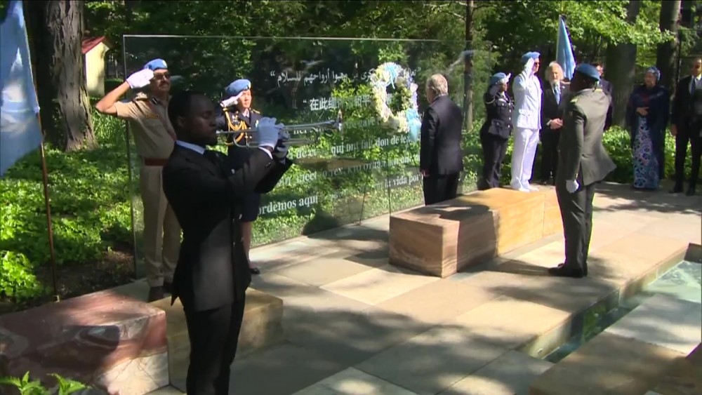 During formal ceremonies at United Nations Headquarters, Secretary-General António Guterres laid a wreath to honor the more than 4200 UN peacekeepers who have lost their lives since 1948.