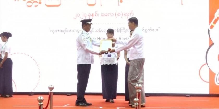 Phyo Oat Win, Kamayut Township Red Cross Association, Member, said "I won first prize in Myanmar Essay Competition and third prize in English Poem Competition. I portray the work undertakings of the Red Cross Society and its affiliated associations based on my practical experience."