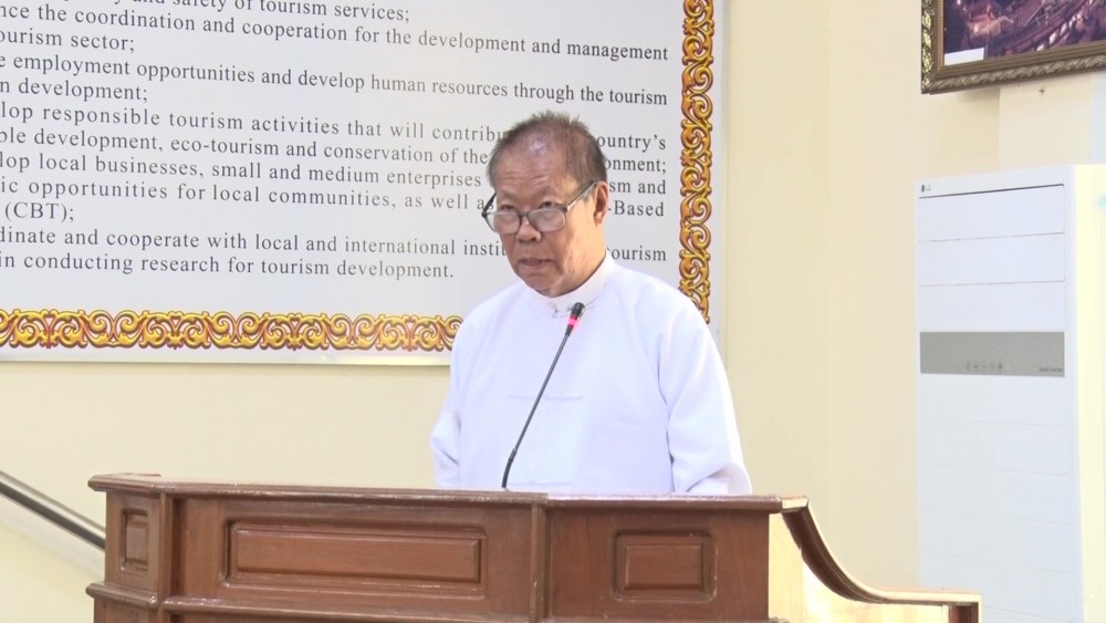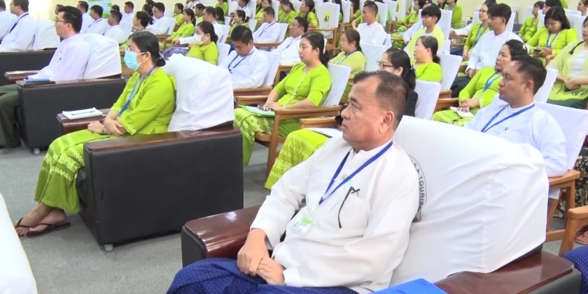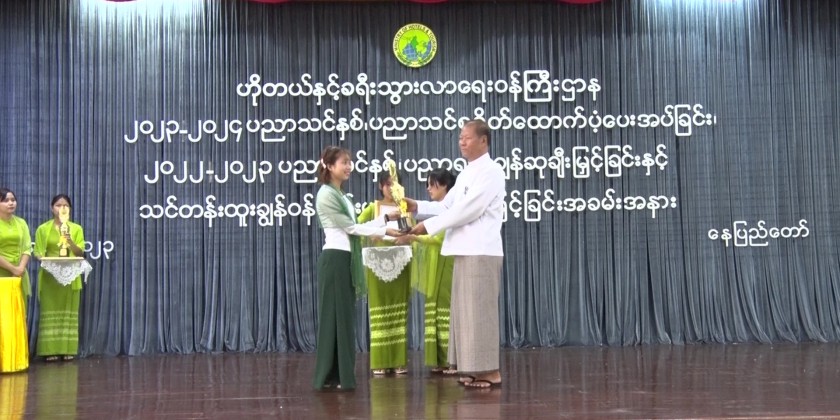 The Ministry of Hotel and Tourism held a ceremony of providing educational assistances for the 2023-2024 academic year and presenting awards for the outstanding students who passed the matriculation examination for 2022-2023 academic year and the personnel who won the outstanding prizes in the civil service trainings at the Jade Hall of the Ministry, Nay Pyi Taw in the morning on July 18 with the attendance of Union Minister U Aung Thaw, Senior officials, outstanding students and personnel and the parents of the students.