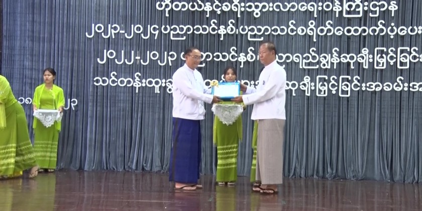 Next, the Union Minister provided the educational assistance for 2023-2024 academic year through the director General and Deputy director General and awarded gift of honor and cash prizes to the students who passed the matriculation examination with distinctions for 2022-2023 academic year.