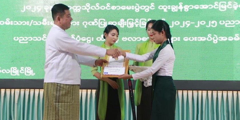 Next, the Chief Minister and State Ministers provided 4.5 million Kyats for the students who passed the 2023-2024 matriculation examination with distinctions and the students who are studying university level and basic education level and 1.4 million Kyats of educational cash assistance for the students from the districts of the State and the Region and District administrators accepted.