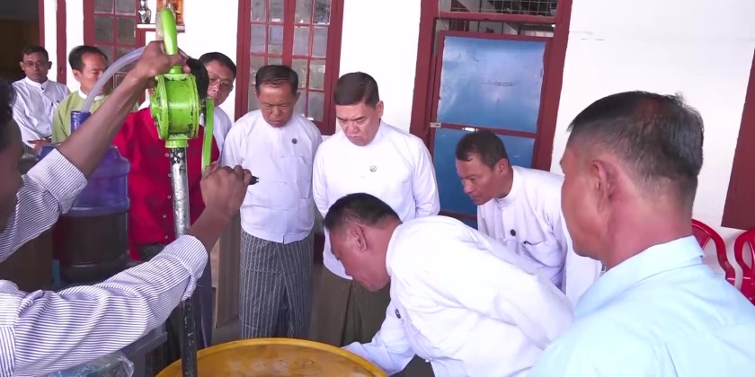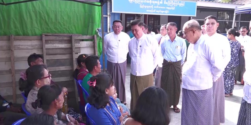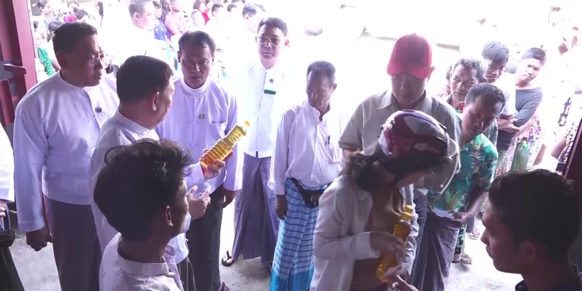 After that, Chief Minister U Htein Lin, along with members, visited the Kyaybin Gyi Ward in Sittwe to observe and support the sale of cooking oil at affordable prices for the public, organized by the Rakhine State Government. They coordinated with the responsible officials regarding the necessary supplies.