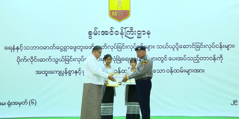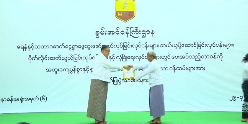 At the ceremony, Union Minister for Energy U MyoMyintOo said that it was found that the employees who were honored, performed their duties in addition to their original tasks according to the work requirements with excellence and risk. On behalf of the Ministry, he would like to express his great pride for the staffs who worked tirelessly to transport crude oil from that oil fields that were difficult to transport.