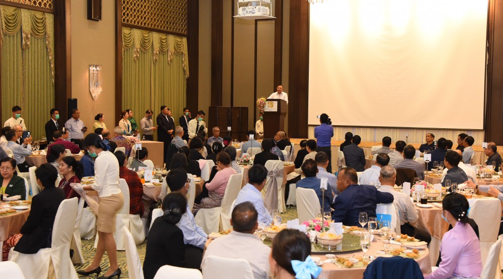 A dinner hosted by Union Minister for Foreign Affairs U Wunna Maung Lwin and wife as well as Union Minister for International Cooperation U Ko Ko Hlaing to the retired Ambassadors who were conferred honorary titles and medals, honorary title and medal recipient Ambassadors who are discharging duties in foreign countries and high ranking officials in the Ministry was held at the Jasmine Nay Pyi Taw Hotel on Thursday evening.