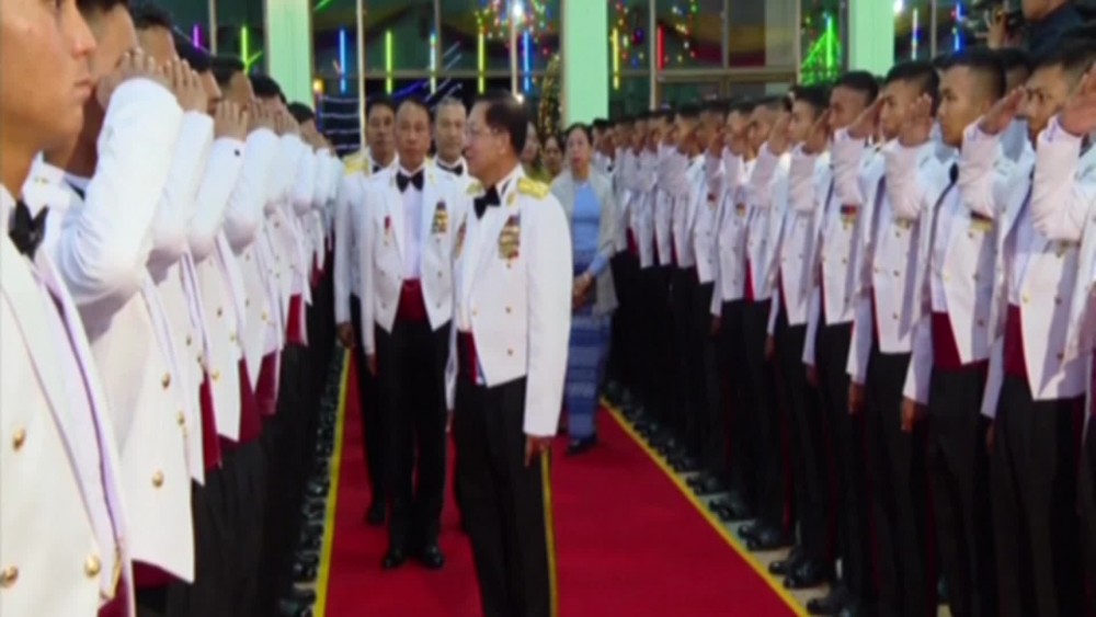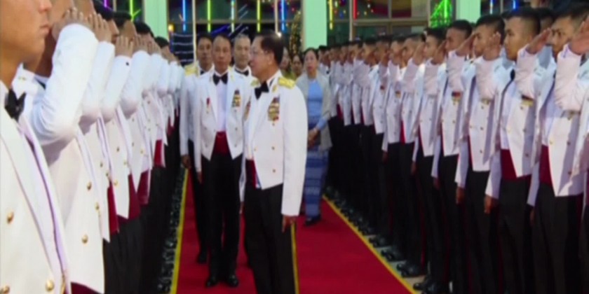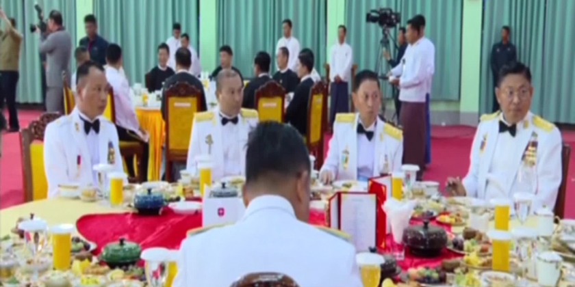 The Senior General cordially greeted the graduate officers and had dinner together. Before and during the dinner, the Senior General and party enjoyed the music performed by the Myawaddy Entertainment Troupe under the Directorate of Public Relations and Psychological Warfare together with the graduate officers.