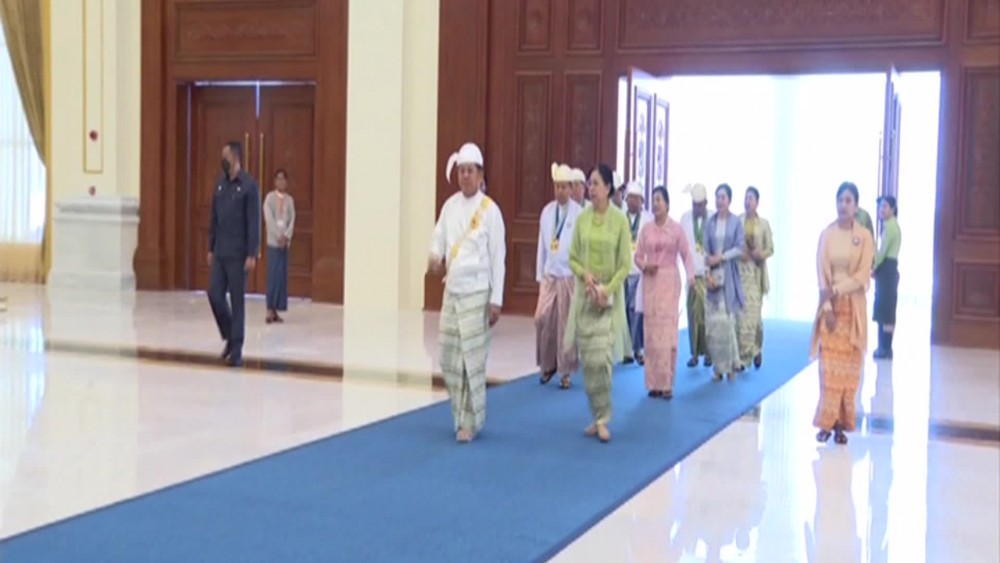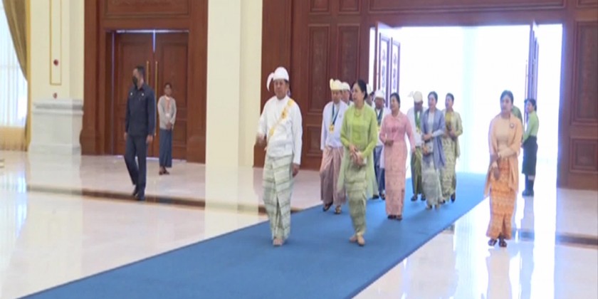 After the ceremony, the Prime Minister cordially greeted title winners and their families. Later, the Prime Minister presented honourary cash to the staff from the Ministry of Home Affairs, the Ministry of Information, the Ministry of Religious Affairs and Culture, ethnic youths and students who served duties in the honourary title conferring ceremony and architects who designed the hall of the State Administration Council building.