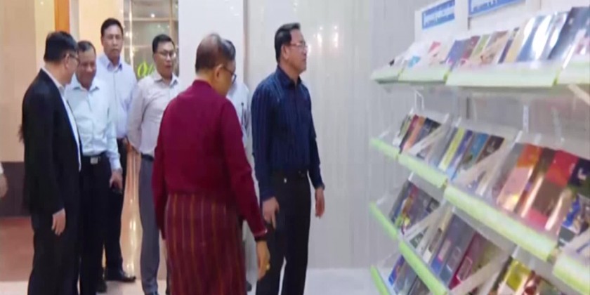First, the Union Minister and attendees observed the books and journals published by the Center. Then the video clips on the Myanmar Affairs studied by the center and its work achievements were shown.