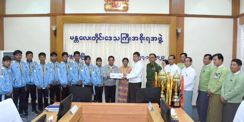During the ceremony at the Regional Government Office, Chief Minister U Myo Aung expressed words of honour for winning the championship trophy and prizes. He added that teachers play a pivotal role in shaping their students to become skillful youths, and urged the athletes to try hard to raise the prestige of the country.