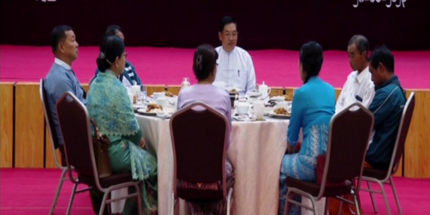 Also, Union Minister for Religious Affairs and Culture U Tin Oo Lwin gave words of congratulations. And, a representative of the hot-air balloon experts team expressed words of thanks. And, commemorative gifts were presented to the experts. This ceremony also included an honourary lunch reception.