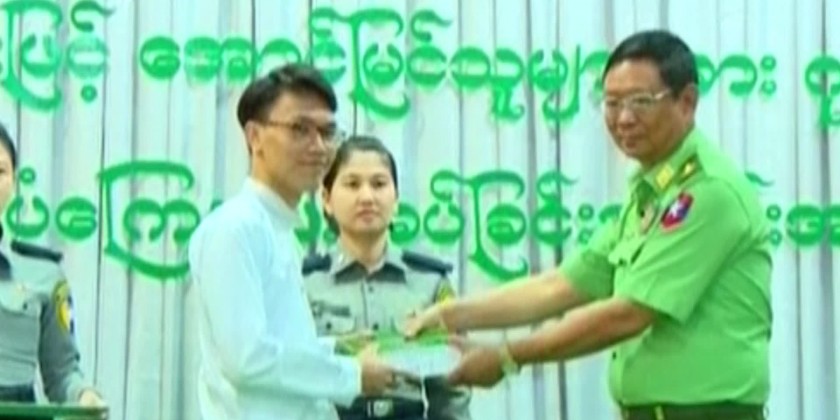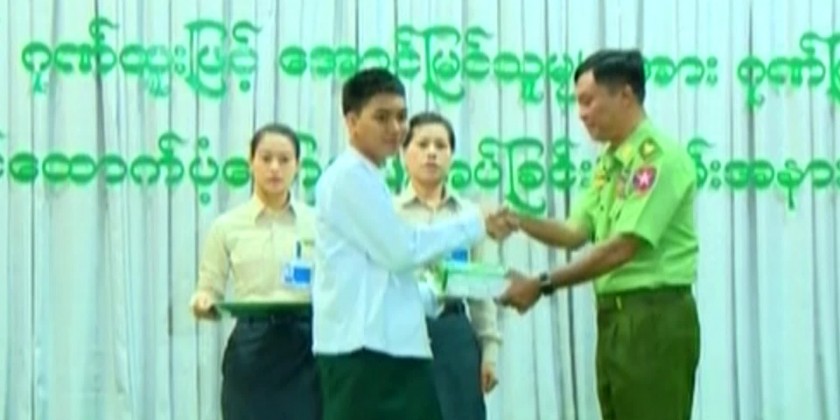 The ceremony of awarding outstanding students and providing educational assistances for the children of staff of the ministry of home affairs was held at the ministry on Monday and the union minister for home affairs Lt. Gen. Kyaw Swe delivered a remark of honoring.