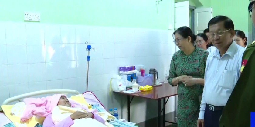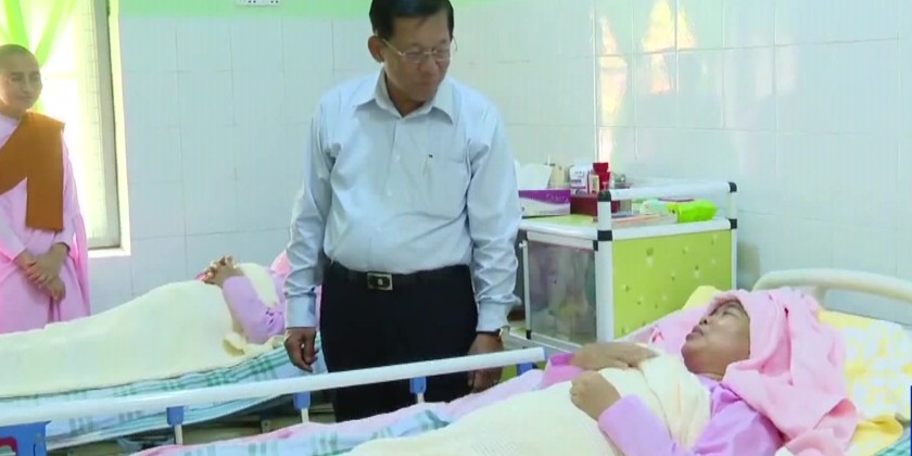 The Prime Minister and wife then comforted one monk and two civilians in the ICU and two nuns in the pediatric ward, all injured in the recent earthquake. They also provided nutritious food and cash donations to the patients.