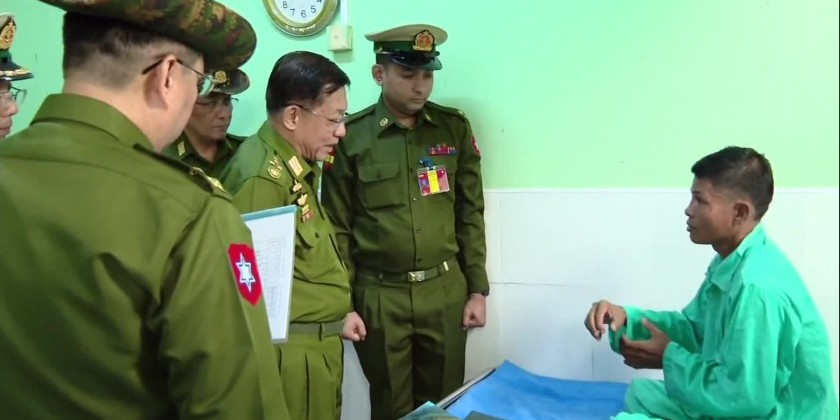 Next, the Senior General and party visited local Tatmadaw Hospital and comforted the officials, Tatmadaw men and members of Myanmar Police Force receiving treatments at the hospital. The Senior General also fulfilled the requirements of the hospital.
