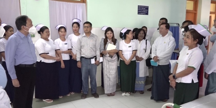 On 15th February, Union Minister for Health Dr. Thet Khaing Win accompanied by concerned officials made inspection tour at People’s Hospitals in Pantanaw and Maubin Townships of Ayeyawady Region.