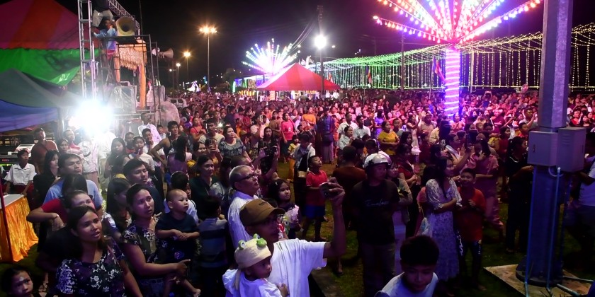 An event featuring a hot air balloon decoration competition, a festival market, stage shows, and entertainment programs is being held on the Strand Road of Dawei City in Taninthayi Region. On the evening of November 3rd, the area was bustling and packed with officials, local residents, visiting pilgrims, and participants.