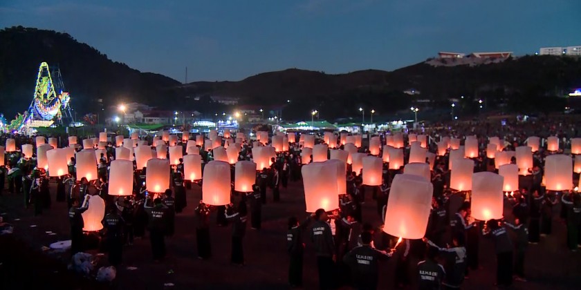 Then, the Chief Minister encouraged all festive comers to celebrate and enjoy the festival with brotherhood spirit peacefully and joyously. Then, the patron of Tazaungdaing Festival Celebration Organizing Committee and the Chief Minister pressed the button to inaugurate the festival, releasing 2 Sein Na Pan hot-air balloons, 50 medium hot-air balloons by the ethnic troupes, 300 small hot-air balloons by the students, and 2,000 small hot-air balloons by the audience.