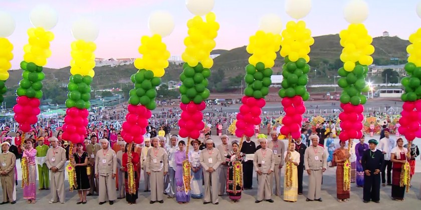 First, the Chief Minister and wife together with Chief Justice of the State High Court and wife, Deputy Commander of the Eastern Command and wife, State Ministers, State Advocate General, State Government Secretary, State, District, and Township level departmental and other concerned officials offered flowers, water and oil lights to the Lawka Chan Thar Sulamuni Pagoda and launched Sein Na Pan hot-air balloon.