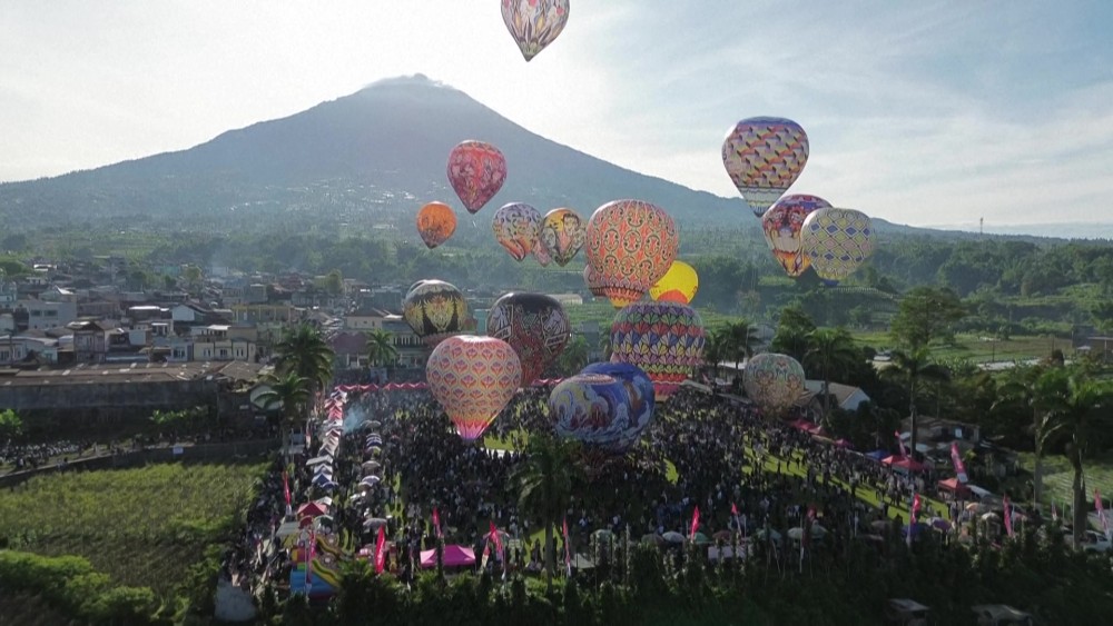 Dozens of hot air balloons adorned with traditional Batik patterns rose above the Wonosobo area in Indonesia’s Central Java province, marking the Eid al-Fitr celebrations. The festival, held annually at the end of Ramadan, symbolized a day of victory for the Muslim community. Dating back to the 1950s, the event evolved with new regulations in recent years.