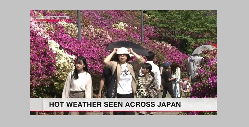 People celebrating the spring holidays in Japan were feeling the heat on Saturday. Temperatures in many places marked daytime highs of 25 degrees Celsius or higher.In a town in Kochi Prefecture, paper carp streamers were seen in the Niyodo River.