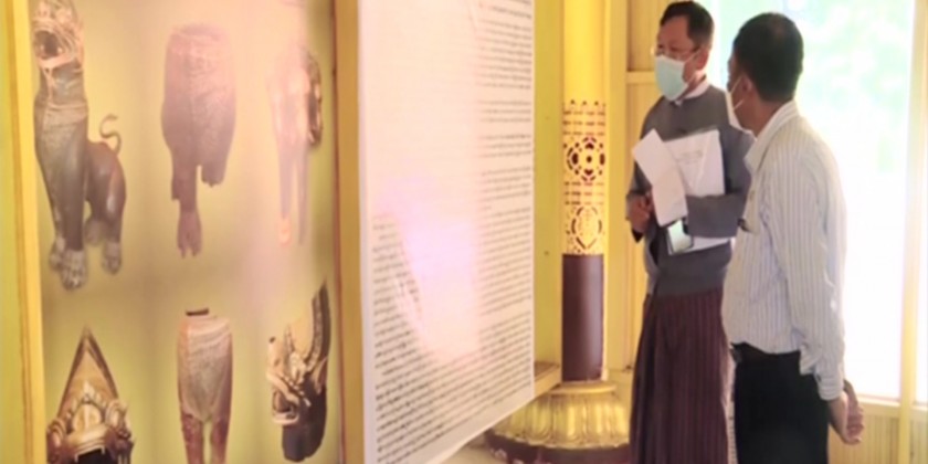 The Union Minister for Hotel and Tourism Dr. Htay Aung visited Kanbawzathardi Palace site in Bago Township and the director of the Department Archeological Research and National Museum clarified the background history of the palace site, status of excavation for research, reconstruction of palace building based on the findings through the research and the upgrading work process.