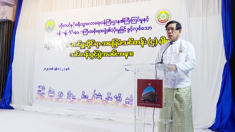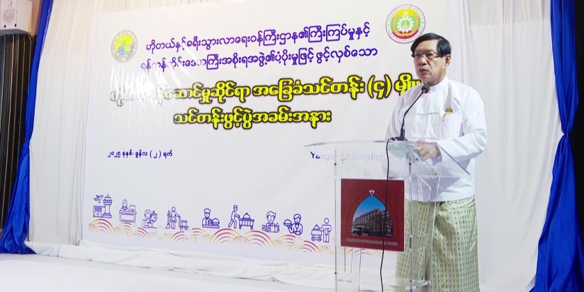 First, Yangon Region Chief Minister U Soe Thein, delivered an opening speech. He stated that as Yangon Region is the economic capital of the country with major industrial zones, this training is aimed to create job opportunities. He also mentioned that the training will be conducted by qualified and experienced trainers from the Myanmar Hospitality Professionals Association (MHPA), who hold ASEAN National Trainer certificates. The lessons will follow the official curriculum set by the Ministry of Hotels and Tourism and will include both theoretical and practical components. Then, a group photo was taken to commemorate the event.